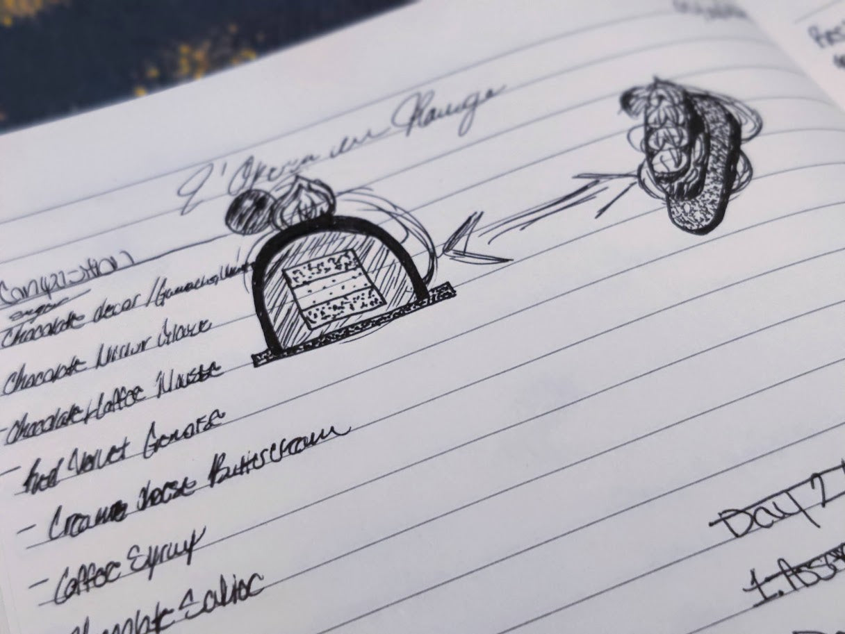 Each piece starts out as a playful sketch on paper, where I'm able to plan out intricate designs.